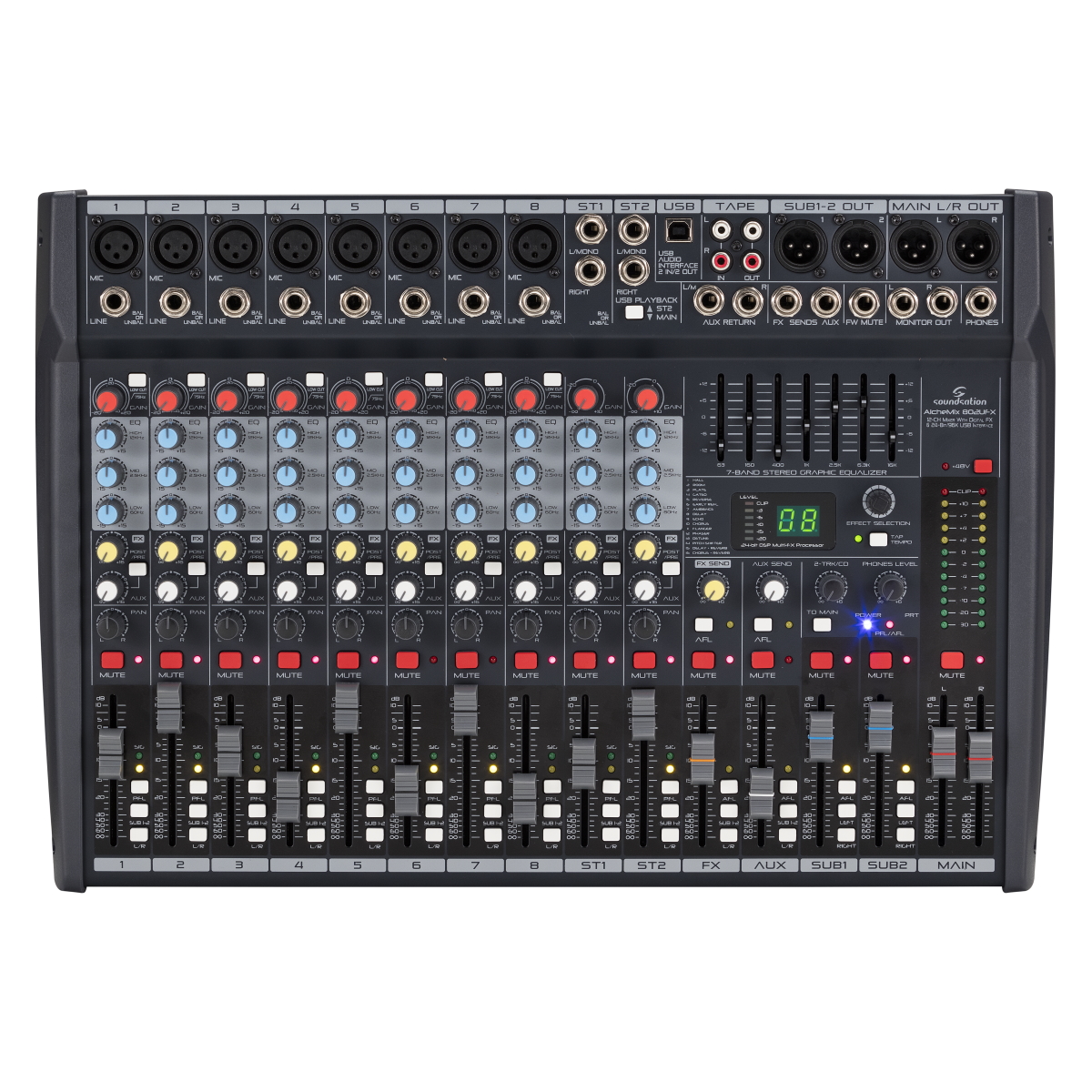 Soundsation ALCHEMIX 802UFX 12-Channel Mixer with USB Stereo In/Out Soundcard